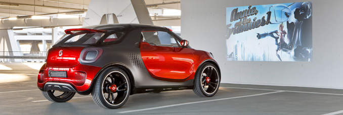 Présentée durant le Mondial de l'Auto 2012, le petit véhicule (3.55m de long tout de même) a été imaginé pour les technophiles amoureux du septième Art. Équipée d'un vidéoprojecteur installé sous son capot, la Smart ForStar transforme en effet n'importe quel surface verticale en toile de cinéma et par extension n'importe quel endroit en un drive-in high-tech improvisé. Bref, la ForStars est en quelque sorte un petit cinéma ambulant. Côté performances, la motorisation alimentée par une batterie de 60Kw soit l'équivalent de 82Ch pour un couple de 135Nm propulse la ForStar à une vitesse maximale de 130Km/h.